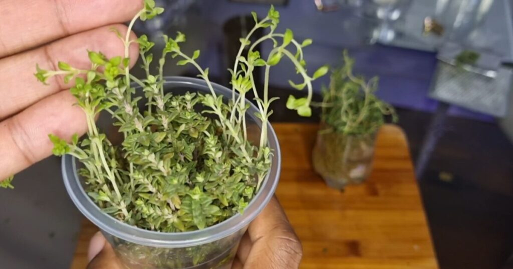 Thyme is a versatile herb that grows beautifully in water. Cut a few stems, remove the lower leaves, and submerge the cuttings in water. Thyme adds a wonderful aroma and flavor to soups, roasted vegetables, and marinades.