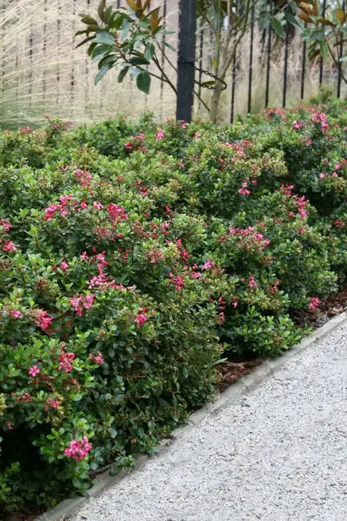 More compact than others, but a beaut if youre layering a privacy design. Hebes are tidy, evergreen, and flower in burstsgreat near the front yard or as a softener below taller screens.