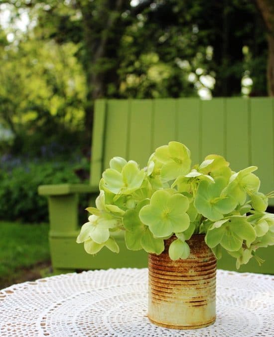 Provide rusty patina to soup cans and use them as planters. We found the idea here.