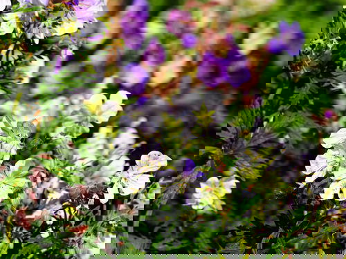Purple petals with white and yellow patterns look beautiful on 6-9 inches tall plants. It prefers partial shade and can withstand full sun as well.