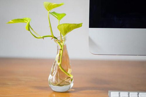 The green and yellow leaves of the pothos plant look quite attractive in vases.