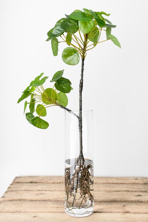 A tall pilea with its bright green leaves will look just right in a tall vase.