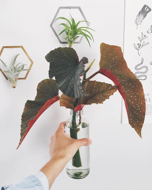 The polka dot begonia plant cutting will look simply great in a tall glass bottle.