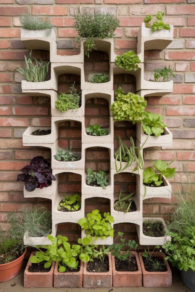 - Stack cinder blocks in a desired pattern, leaving the holes exposed for planting.