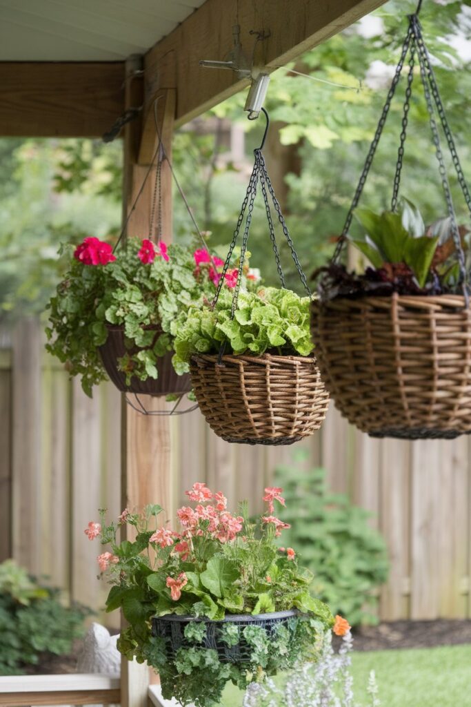 - Install hooks on your balcony, porch, or garden wall at varying heights.