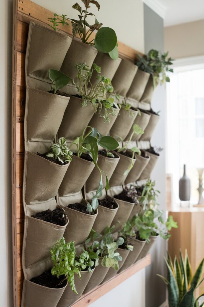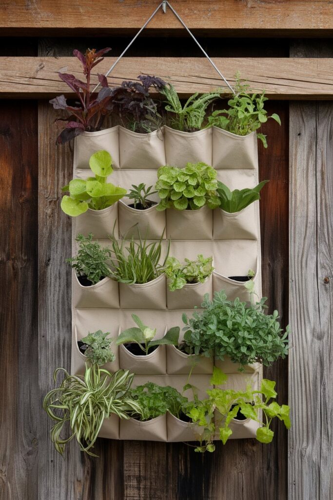 - Sew or buy fabric pockets for planting to create a flexible vertical garden.
