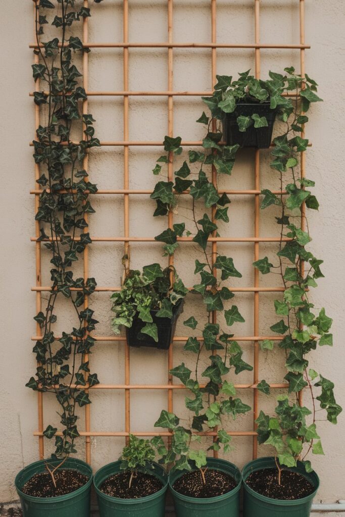 - Plant climbing plants like beans, ivy, or morning glories at the base of the trellis.