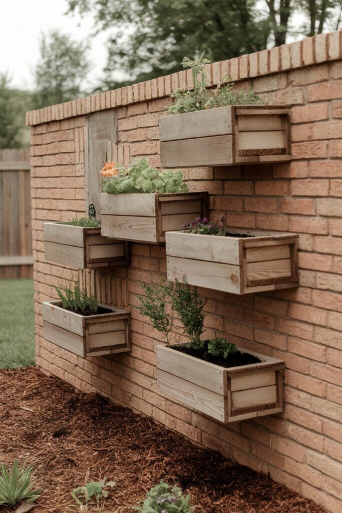- Mount planter boxes on a wall or fence at varying heights to create visual interest.