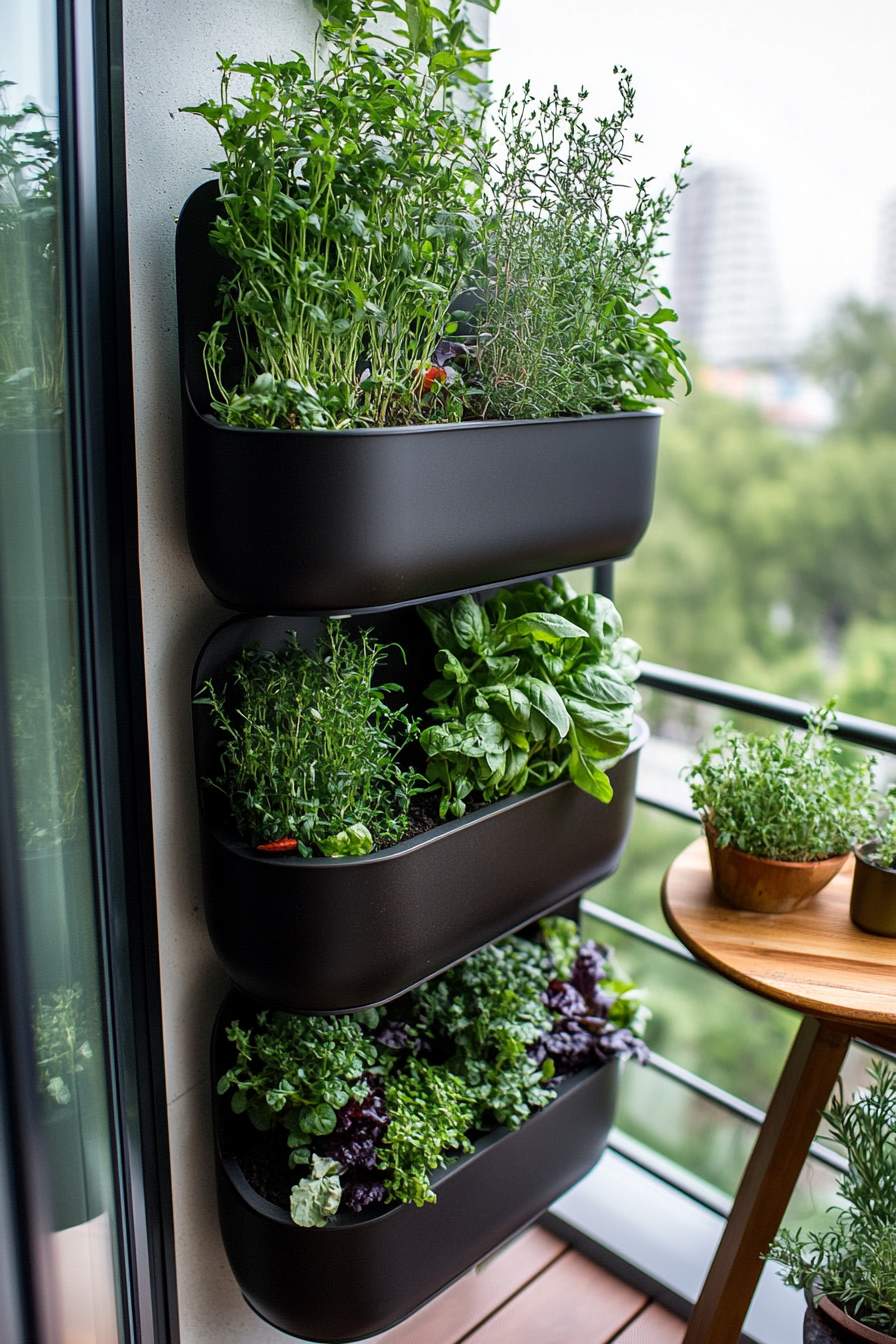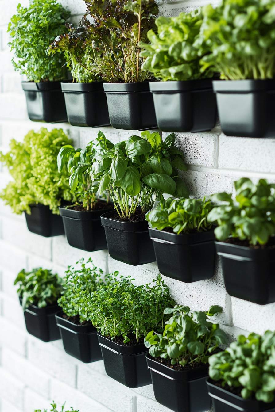 One of the best solutions for growing vegetables in small spaces is using wall-mounted planters. These vertical setups can be attached directly to the walls of your balcony, patio, or even indoors near a sunny window.
