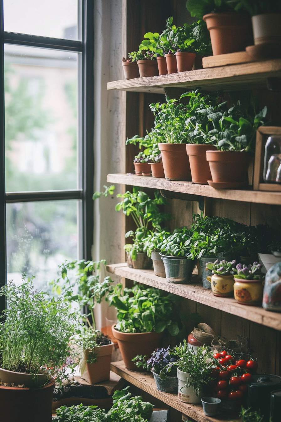 If youre short on outdoor space, consider creating an indoor vertical garden using a simple shelving unit. This design lets you grow a variety of vegetables, herbs, and even small fruiting plants like tomatoesall inside your home!