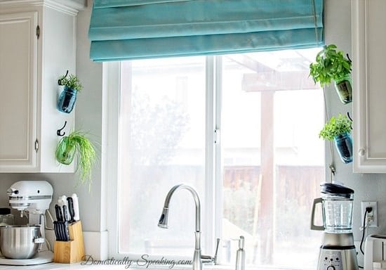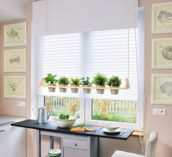 Grow an indoor herb garden like this on your kitchen window. The how-to article is here. Check out more indoor hanging ideas.