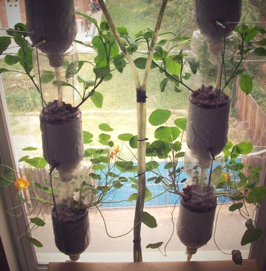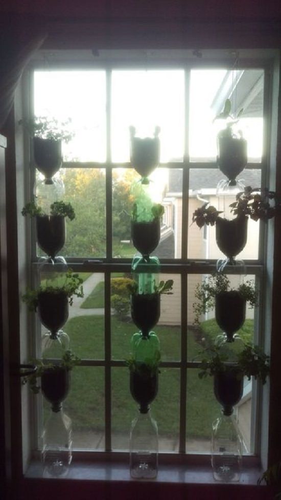 6. DIY Vertical Window Garden out of Soda Bottles