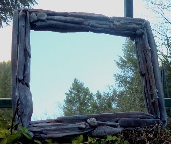 Case your mirror by gluing driftwood pieces with hot glue on borders. Here is the DIY.