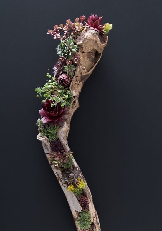 Learn how to fill driftwood with succulents. The tutorial is available here. Also, check out many more DIY succulent driftwood planter ideas in this !