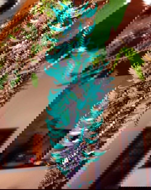 This attractive colorful vine is admired for its striking shade. The plant also grows dangling clumps of blue-green and claw-shaped flowers.