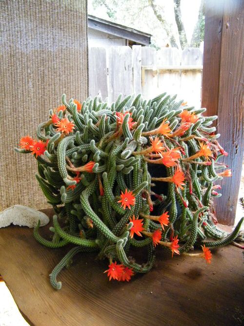 This stunning cactus exhibits long, finger-like stems covered in soft white spines. It grows in clumps and looks stunning in hanging baskets.