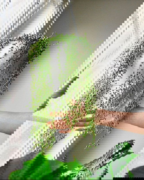 The plant has soft stems with rounded leaves that intricately weave together. It is the best plant for growing on shelves and hanging baskets.