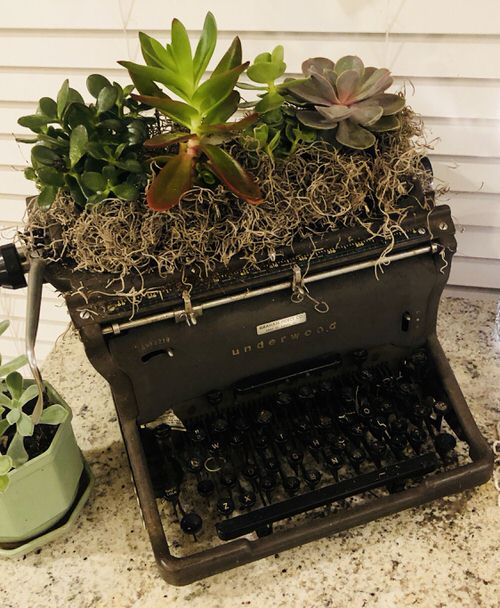 A vintage typewriter will look absolutely charming with succulents growing on top.