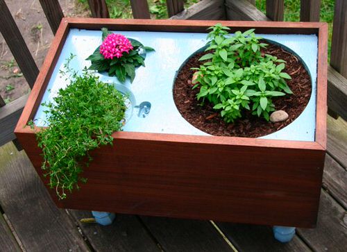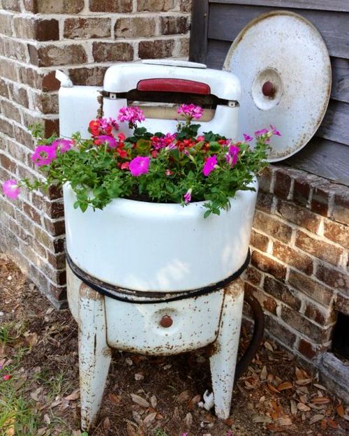 An age-old retro washing machine will look great with plants in a corner of your garden.
