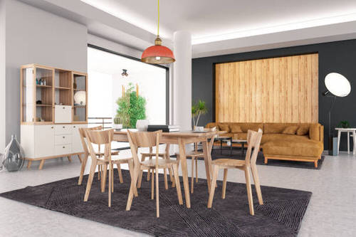14. Wooden Themed Dining and Living Room