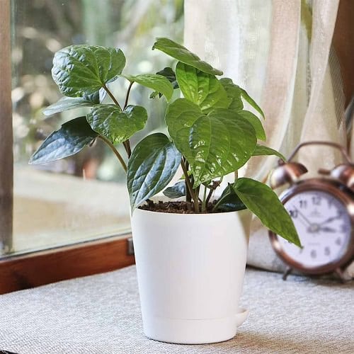 Betel leaf has waxy green, heart-shaped leaves that are prized with medicinal and culinary properties.