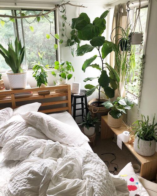 With such a green and lovely bedroom arrangement with plants, you will surely get a good night s sleep.