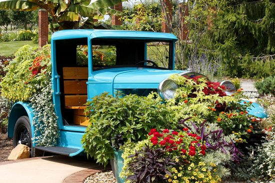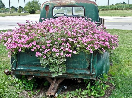 Utilize the cargo bed of an old pickup to grow flowers. Trailing plants are best for this purpose!
