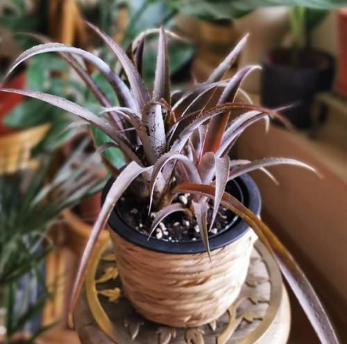 This intergeneric bromeliad hybrid originated in South America. If you want to add more colors to your plant collection, this plant is a great choice with red/bronze foliage!