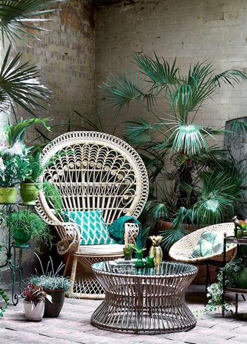 Hanging chair and fern will bring a touch of a tropical vibe to your outdoor garden with a boho feel.