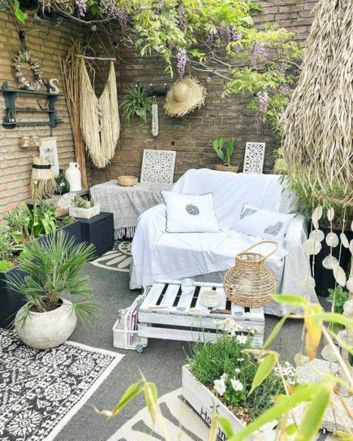 Bring in boho vibes in your apartment by decking up the balcony with its elements. Add lots of vining plants on hanging baskets for an added appeal.
