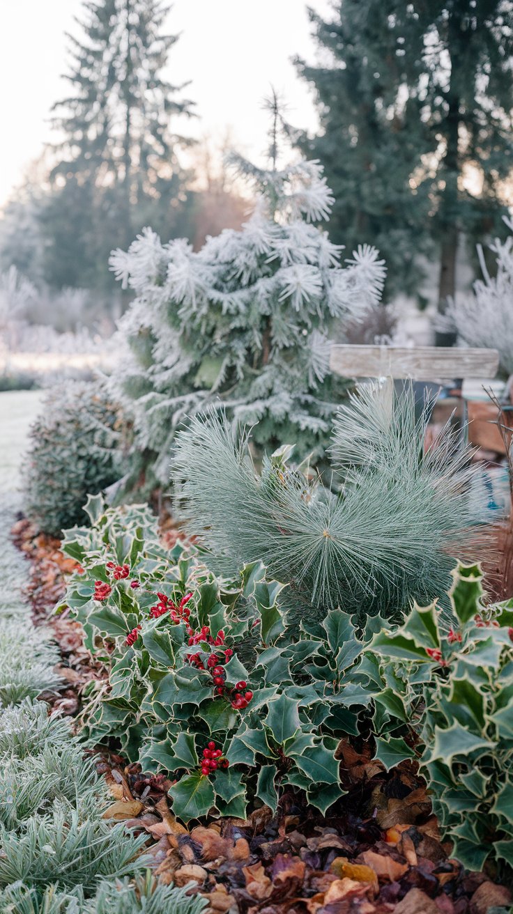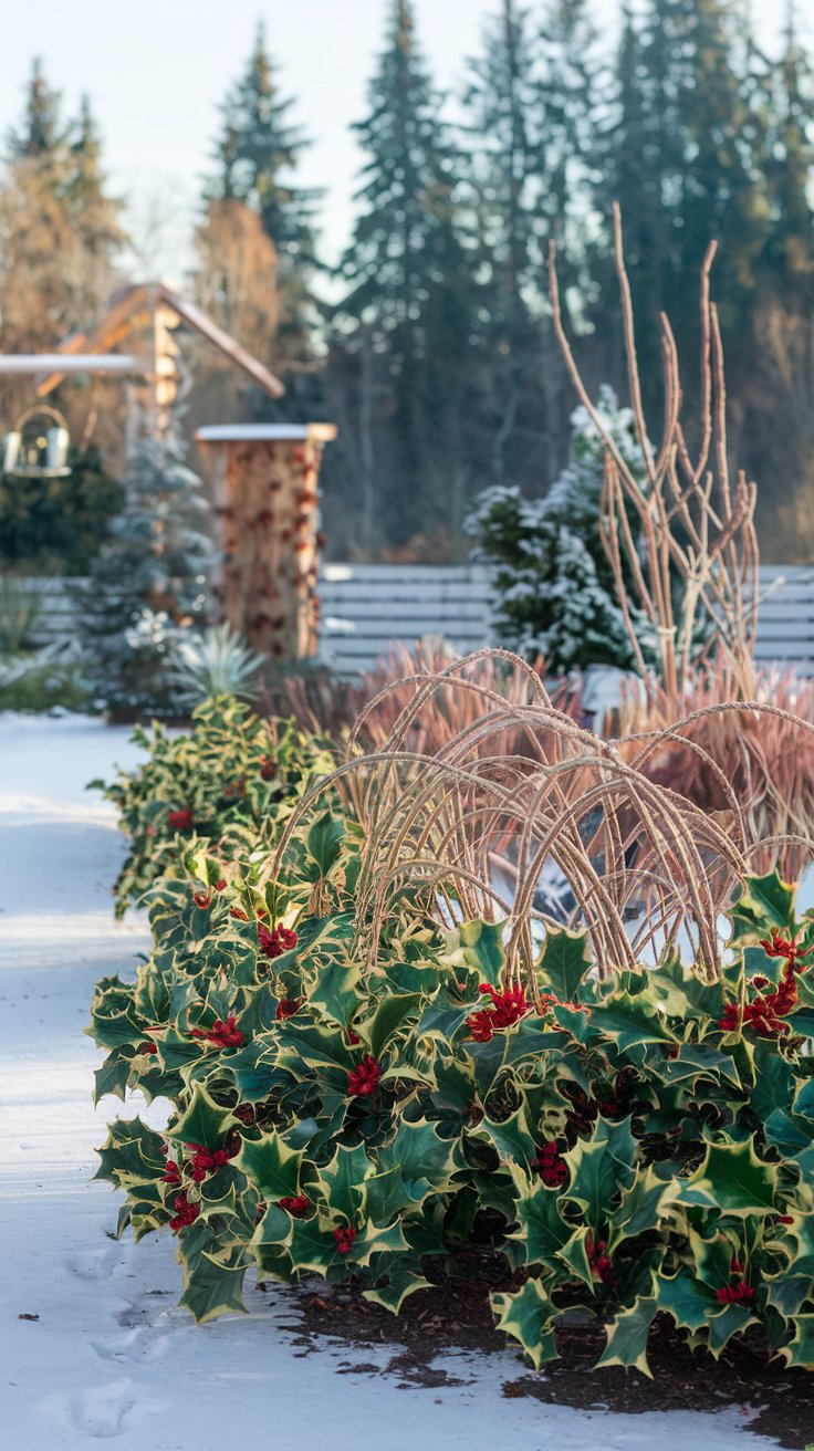 Bring life to your winter garden with vibrant holly bushes and frost-resistant plants. The bright red berries of holly provide a festive pop of color against the snow, while evergreen shrubs keep the garden lush. Plant these along pathways or in pots for easy placement, ensuring your garden remains lively and inviting throughout the season.