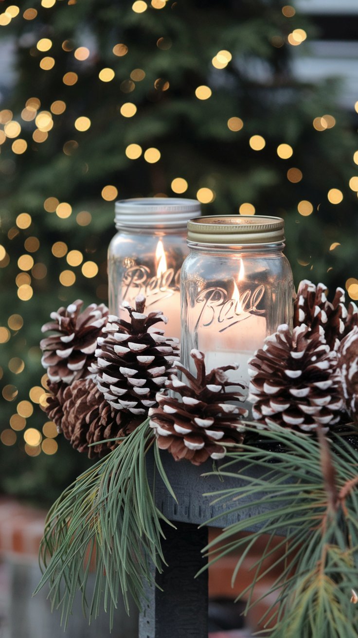 Elevate your DIY winter garden decor with pinecone garlands and mason jar candles. String the garlands along railings or fences for a touch of rustic charm. Place mason jar candles along walkways to cast a warm and inviting glow. These handmade accents are simple yet effective in creating a cozy and festive atmosphere.