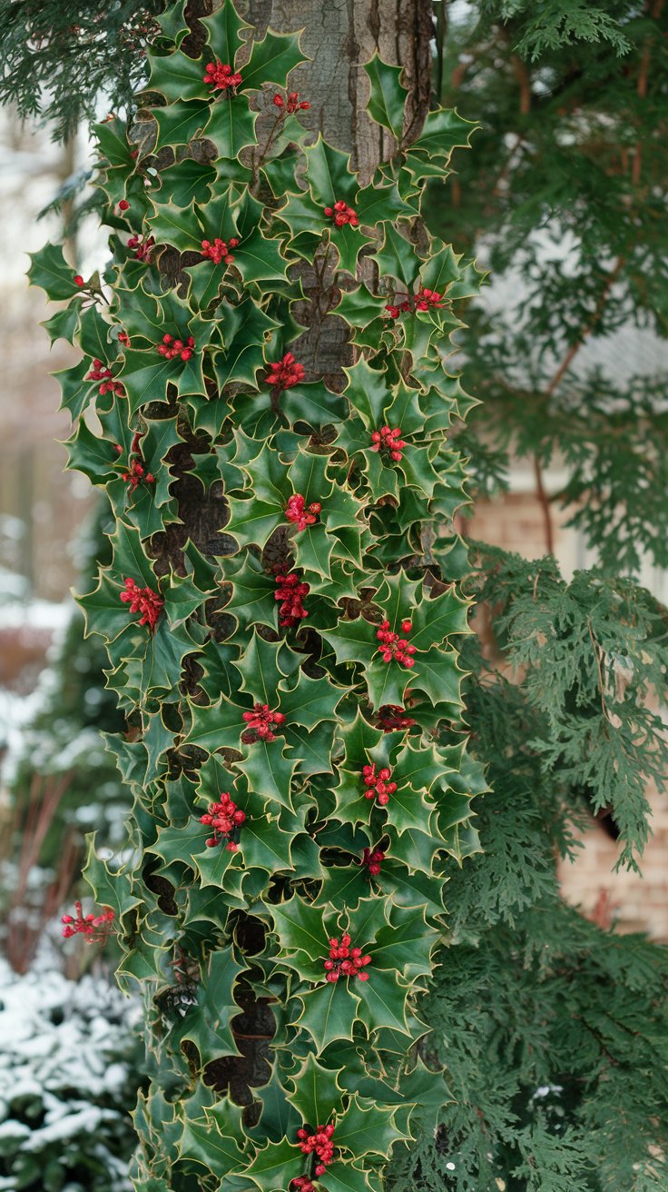 Combine holly, ivy, and evergreen plants for a lush winter garden. The deep greens and pops of red from holly berries create a festive and natural look. Arrange them in layered planters or along pathways for a dynamic design that thrives even in colder months.