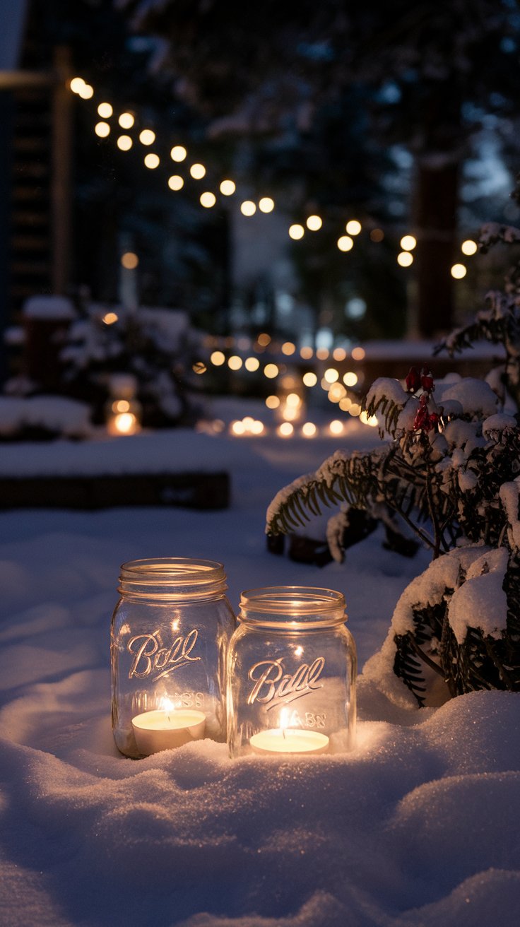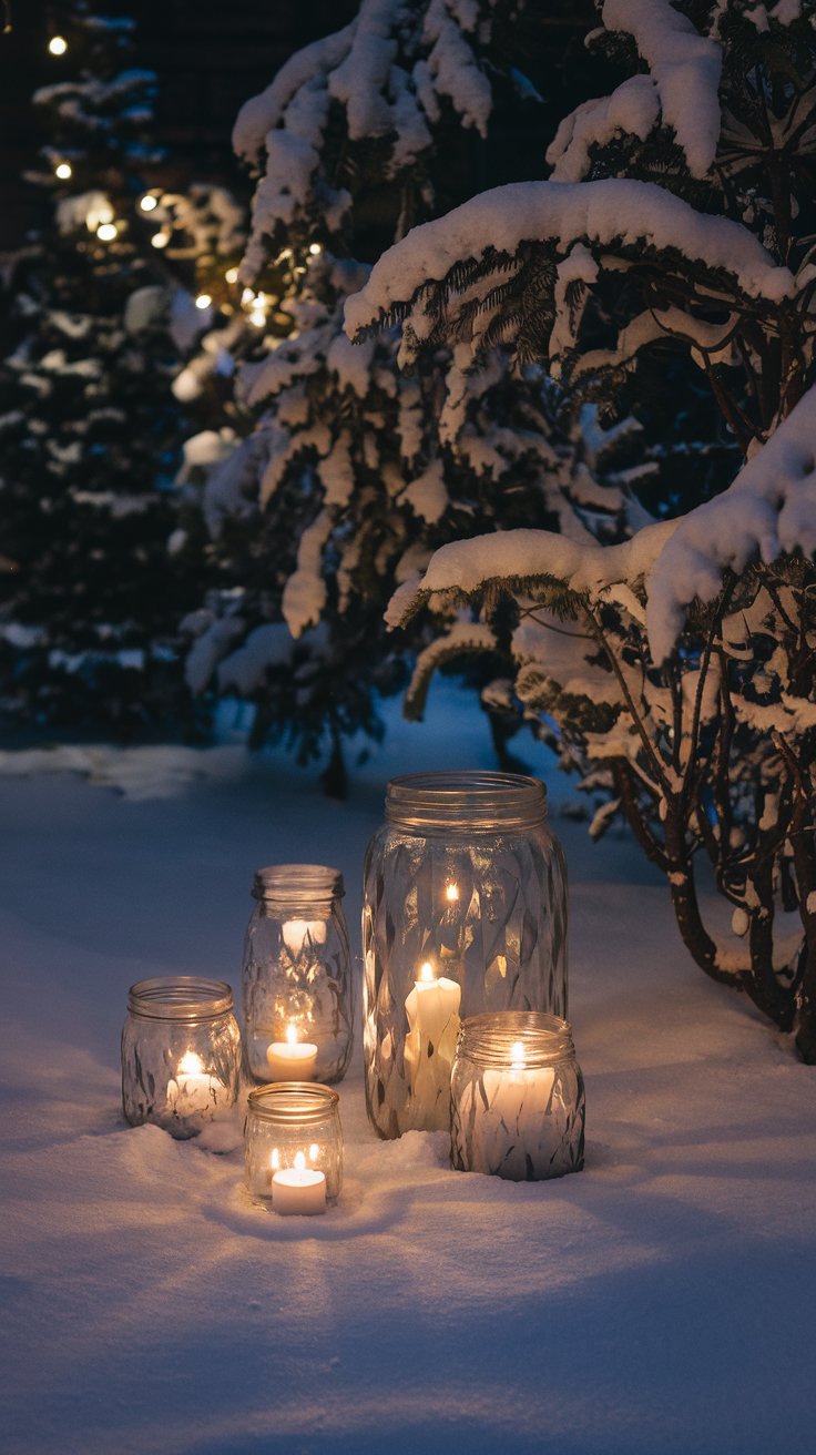 Warm up your winter evenings with mason jars filled with candles. Scatter these jars throughout your garden to create a glowing oasis. Use varying heights and styles of jars to add visual interest, and consider scented candles for an extra sensory delight.