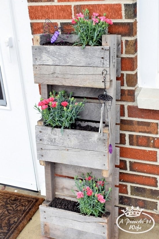 Build this multileveled raised planter box to at the same space. The tutorial is here.3. Cascading Flower Pallet Planter Box
