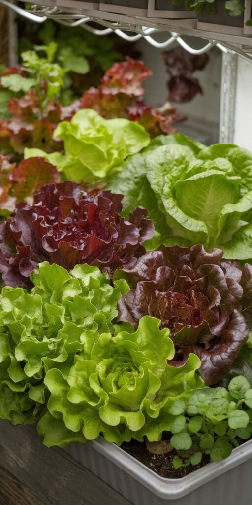 Loose-leaf varieties of lettuce are perfect for indoor gardens. They grow quickly, and you can harvest leaves as needed.