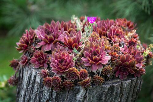 Hens and Chicks is an evergreen succulent variety, which looks quite stunning with its tiny rosette offsets. It takes a shade of pink-red when exposed to sunlight for long.