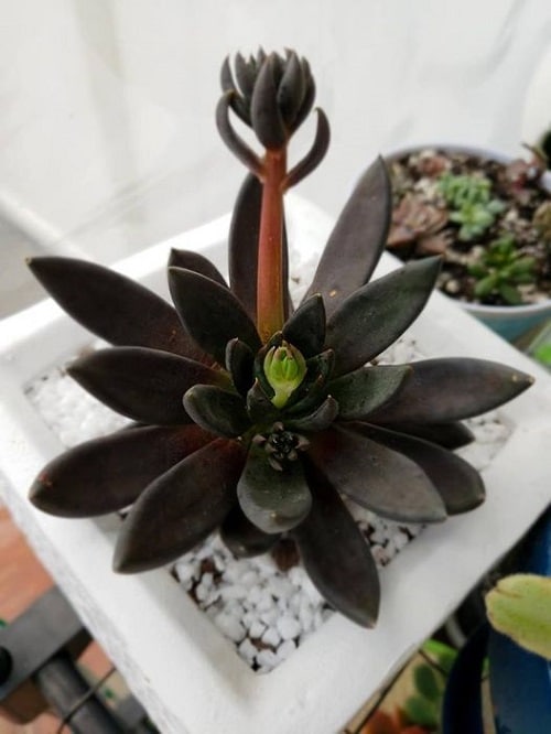 The small and short rosette of this plant has a bright green color initially, which slowly turns into a shade of deep brown. Grow it in full sun and watch it transform!
