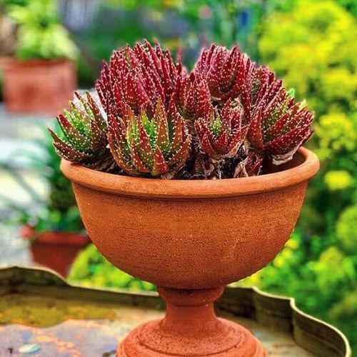 This haworthia variety has a rosette of fleshy light green leaves. If you want to change the color, place it under full sun, and the leaves will turn brown-red with translucent edges!