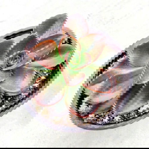 Red Rubin has an evergreen rosette of fleshy emerald green foliage patterned with burgundy red tips. This variety changes its color with the season, which intensifies in cool climates.