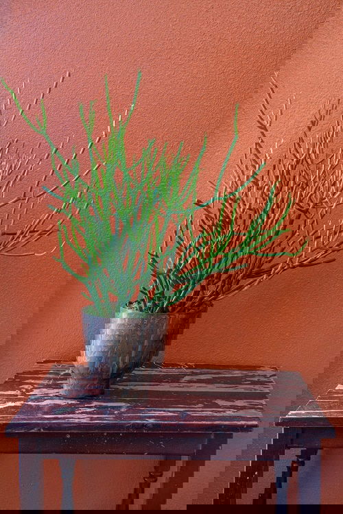 With thin pencil-like foliage, the plant looks quite a stunner with its green foliage. Expose it to bright sun and you ll see it take a magnificent hue of red-orange.