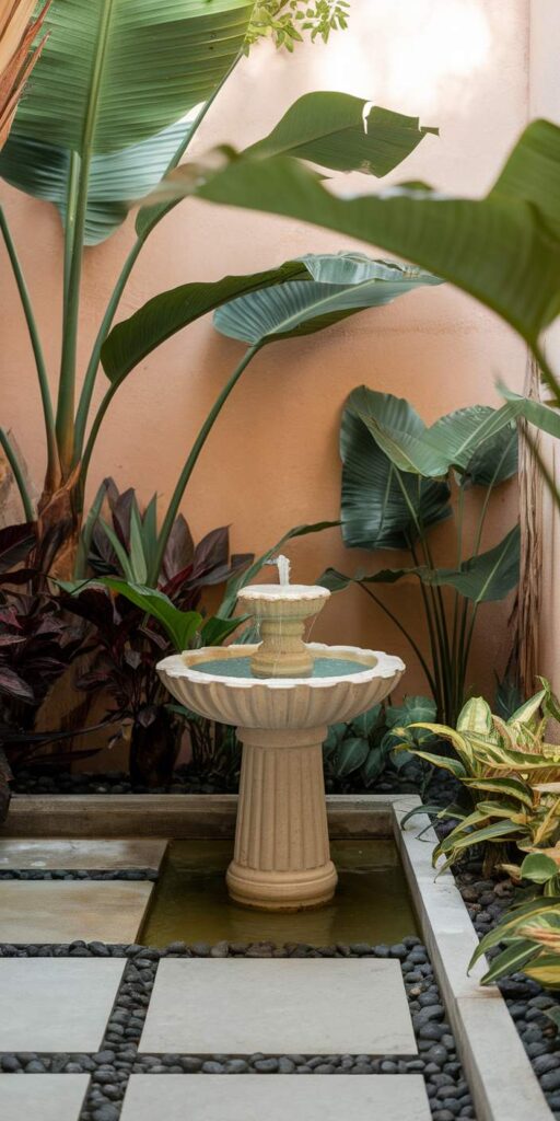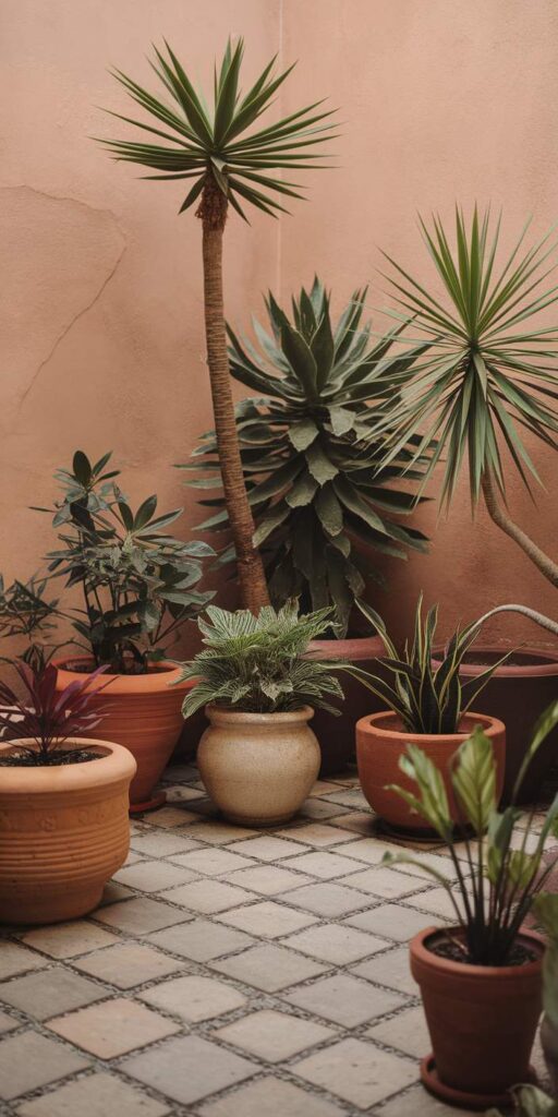 Use tiered planters or stackable plant shelves to create depth and make the most of your available space. Arranging plants at different heights not only maximizes room but also adds a dynamic visual element to your courtyard.