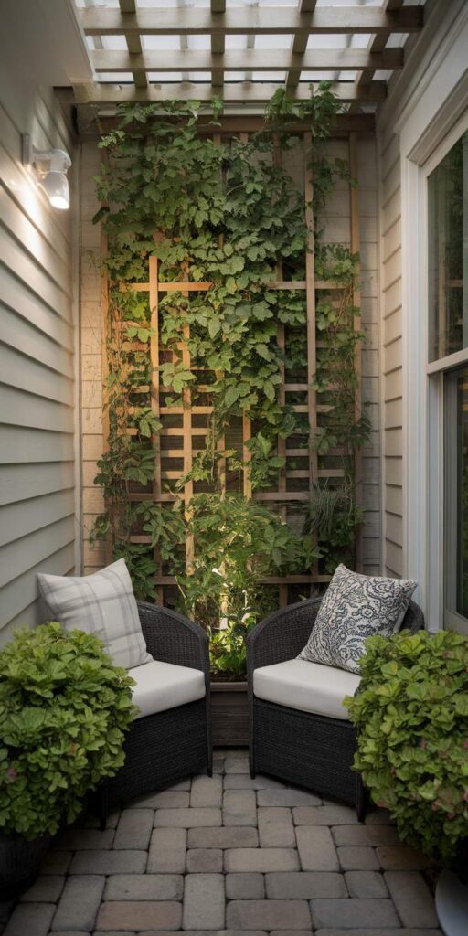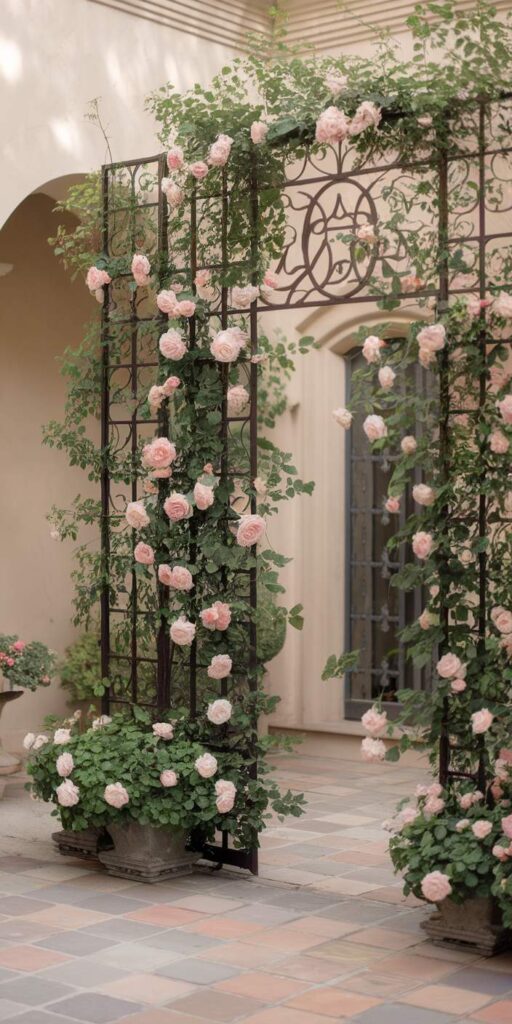 A trellis can be both decorative and functional, adding vertical greenery without taking up floor space. Roses, clematis, or grapevines work beautifully with trellises to create a romantic and lush atmosphere.