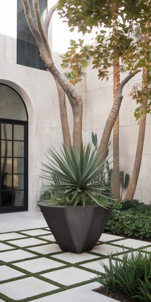A single striking planter or sculpture can serve as a focal point without cluttering the space. Consider a bold geometric planter or a minimalist modern sculpture to add personality.