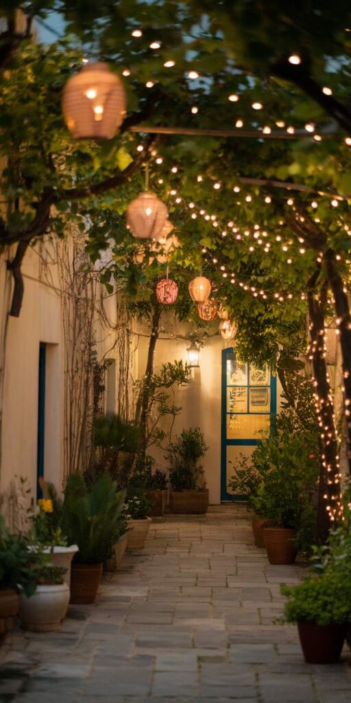 Fairy lights, lanterns, and wall sconces can add a magical ambiance while saving ground space. Solar-powered lighting options can help reduce energy consumption while enhancing the nighttime atmosphere.