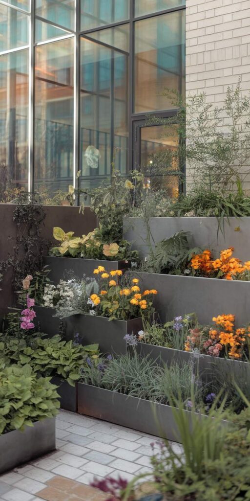 Grow herbs, small fruit plants, or microgreens in pots to have a functional and fresh touch. Compact vegetable planters can be stacked or placed along narrow spaces, making urban gardening achievable.