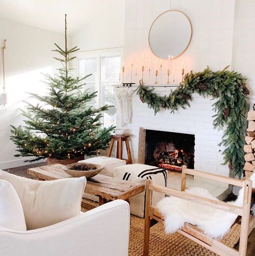 You can use real plants or fake ones to decorate the fireplace to match the look of a Christmas tree.