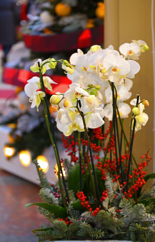 Christmas is never complete without flowers and adding shades of white, yellow, and red complements the overall decor.