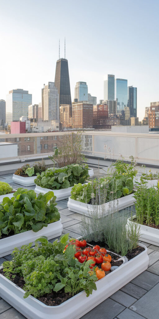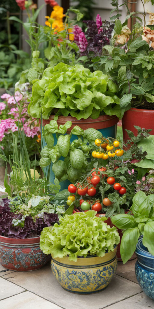 - Example: Herbs, leafy greens, and cherry tomatoes in containers.