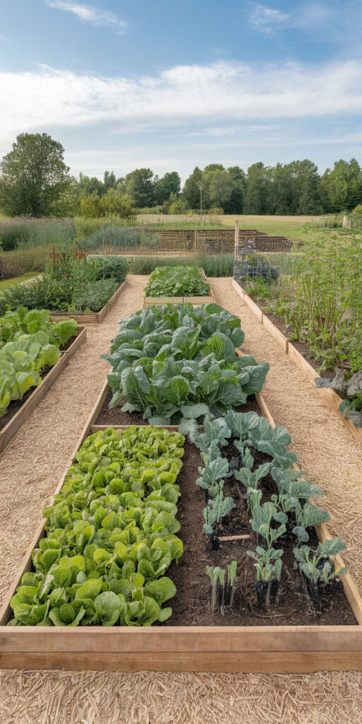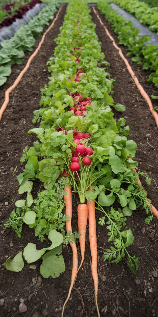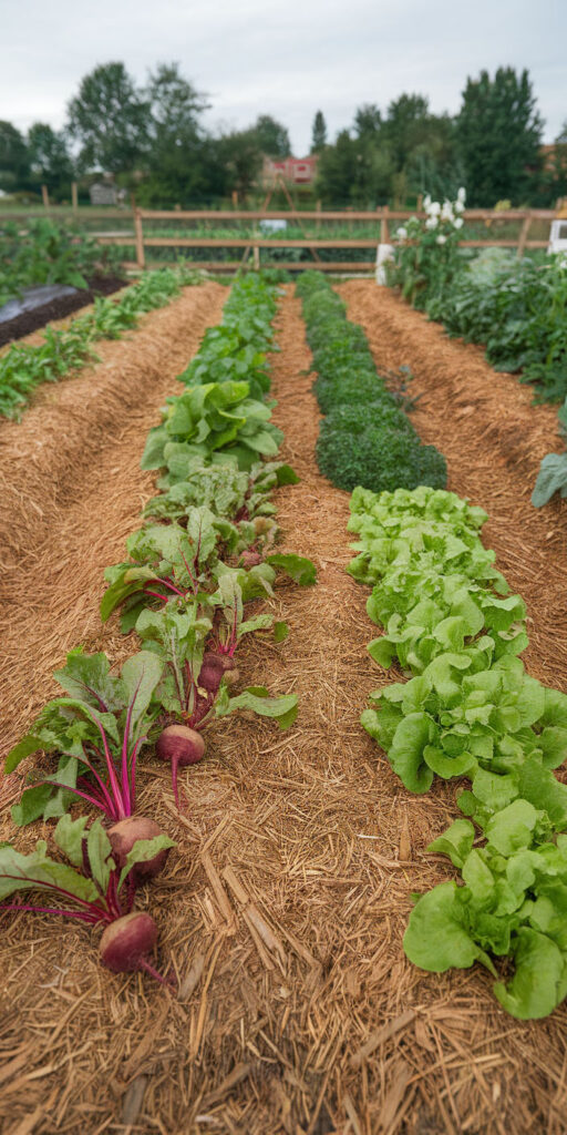 - Example: Direct-seeding lettuce, beets, and radishes in mulched beds.